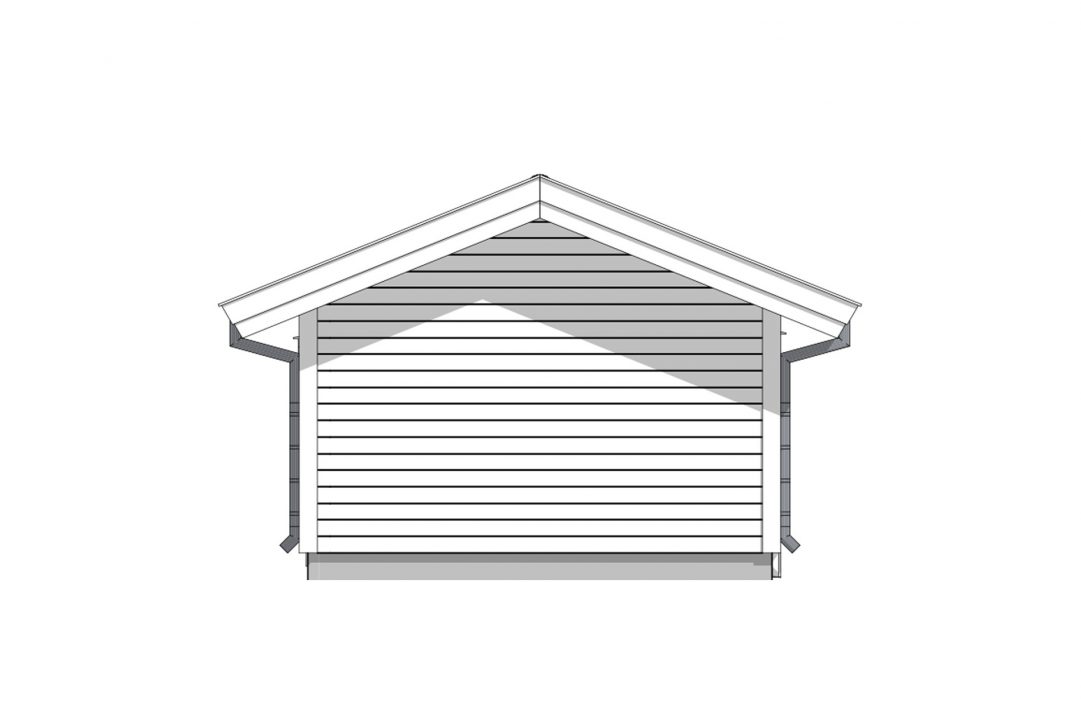 Den klassiske garasjen 802 har mønt tak og en enkel fasade som vil passe inn de fleste steder. Overbygg og søyler gir garasjen et klassisk ytre.